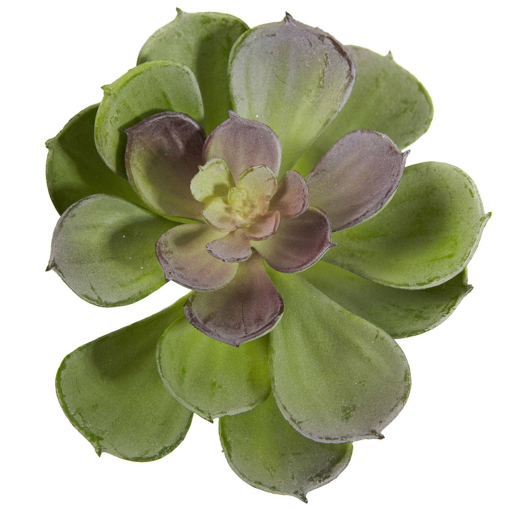 A unique style among artificial Succulents, this Echeveria Succulent stands six inches tall and comes in a set of a dozen for maximum decorative potential. The leaves on this selection are layered, giving the fronds multiple levels, and really add to the look of this piece. Plus, they never need water, so place them anywhere you wish. Makes an interesting gift as well.