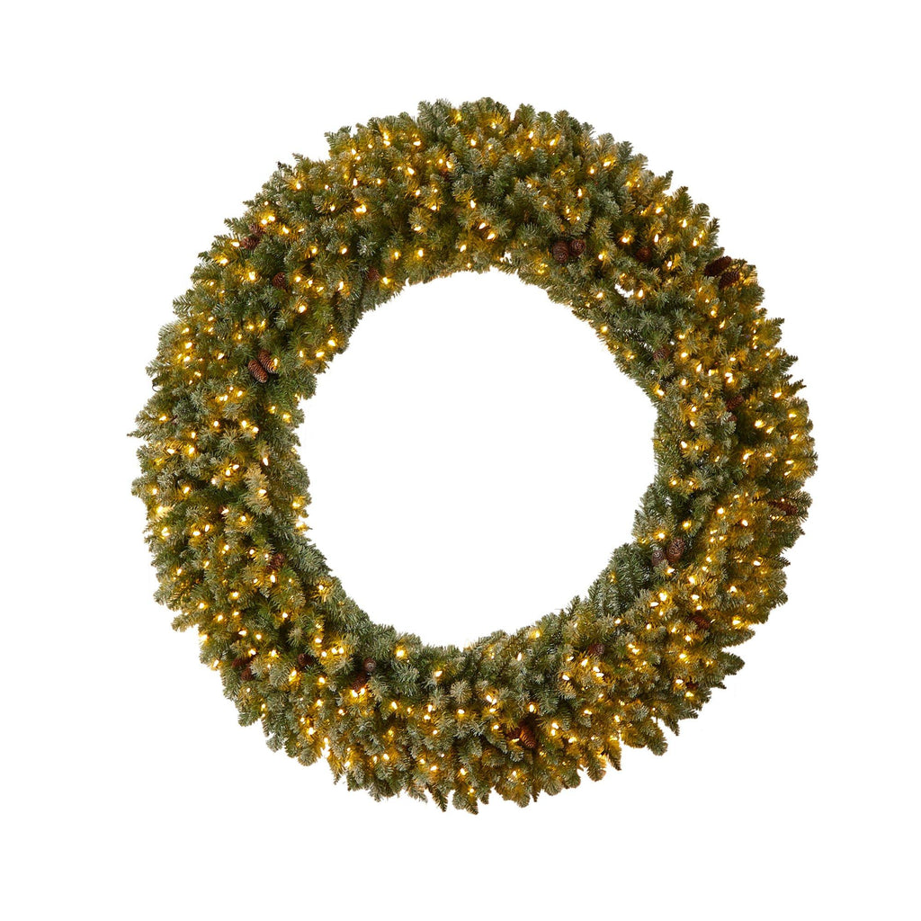 6’ Giant Flocked Christmas Wreath with Pinecones, 400 Clear LED Lights and 920 Bendable Branches