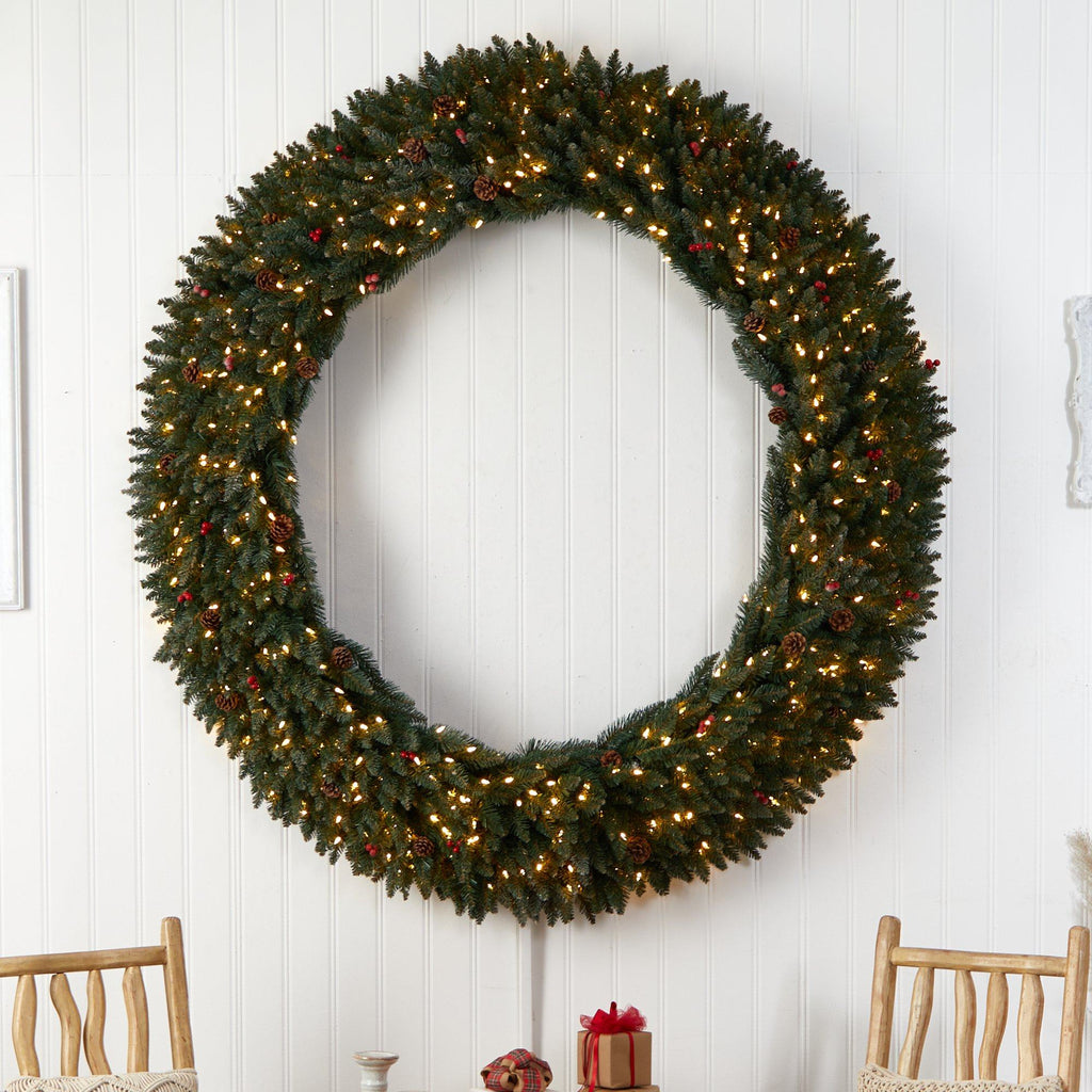 6’ Large Flocked Artificial Wreath w/ Pinecones, Berries, 600 Clear LED Lights & 1080 Bendable Branches