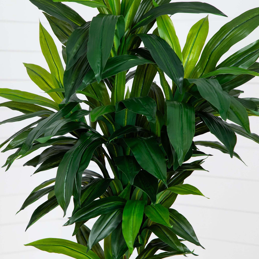 Get ready to elevate those stalks! Our faux Dracaena is here to bring you those tropical vibes, minus the hassle of maintenance. Crafted with meticulous attention to detail and inspired by the beauty of nature, you'll marvel at the glossy leaves and the long, slender trunk that closely resembles its wild counterparts. Designed by horticulturists from premium-quality materials, this lifelike Dracaena offers the flexibility to bend its branches, allowing you to create a genuinely unique and captivating centerpiece. Standing 7' from a black nursery planter, display it in any area in need of a refresh. Ideal for a foyer, living room, or bedroom.