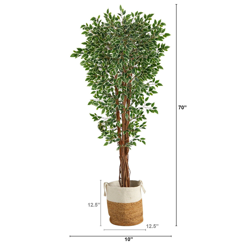 70” Variegated Artificial Ficus Tree in Jute & Cotton Planter UV Resistant (Indoor/Outdoor)