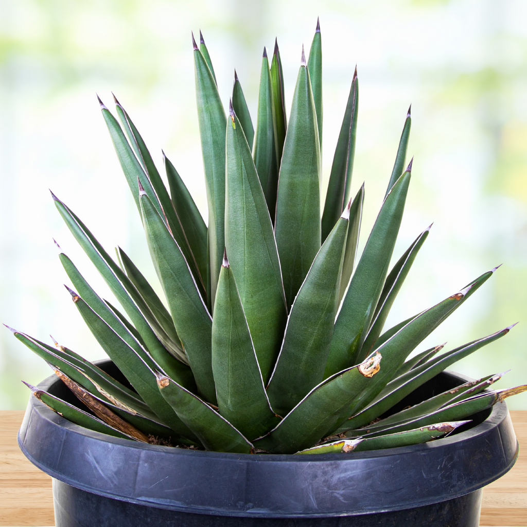 The Arizona smiles agave hybrid has stunningly smooth dark green leaves and a white margin along the leaves. It can be planted in the ground or in a decorative pot. Very cold hardy agave hybrid that can take night time temperatures down to 15 degrees. The Arizona smiles agave hybrid can take full sun and very hot conditions. Parents are Agave lechuguilla and Agave “Sharkskin”. Grows slowly to 3’x3’ in size.