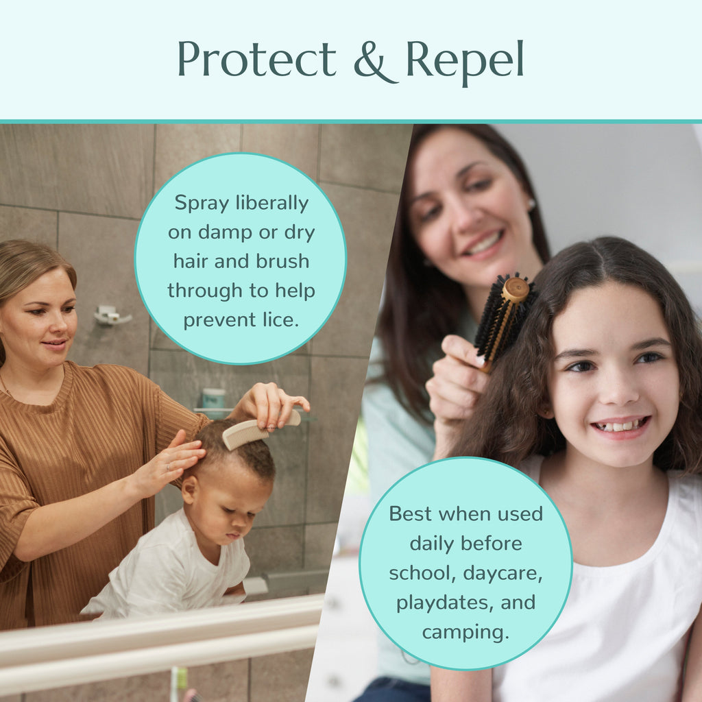 Our formula includes essential oils that are safe for children ages 2 and above. While Peppermint, Cinnamon, and Rosemary oils are often acclaimed for their naturally repellent properties, they may also cause irritation to sensitive skin and respiratory systems. Our blend of pure essential oils was expertly crafted to ensure young children can safely use this spray daily to help prevent lice and keep hair healthy and clean.