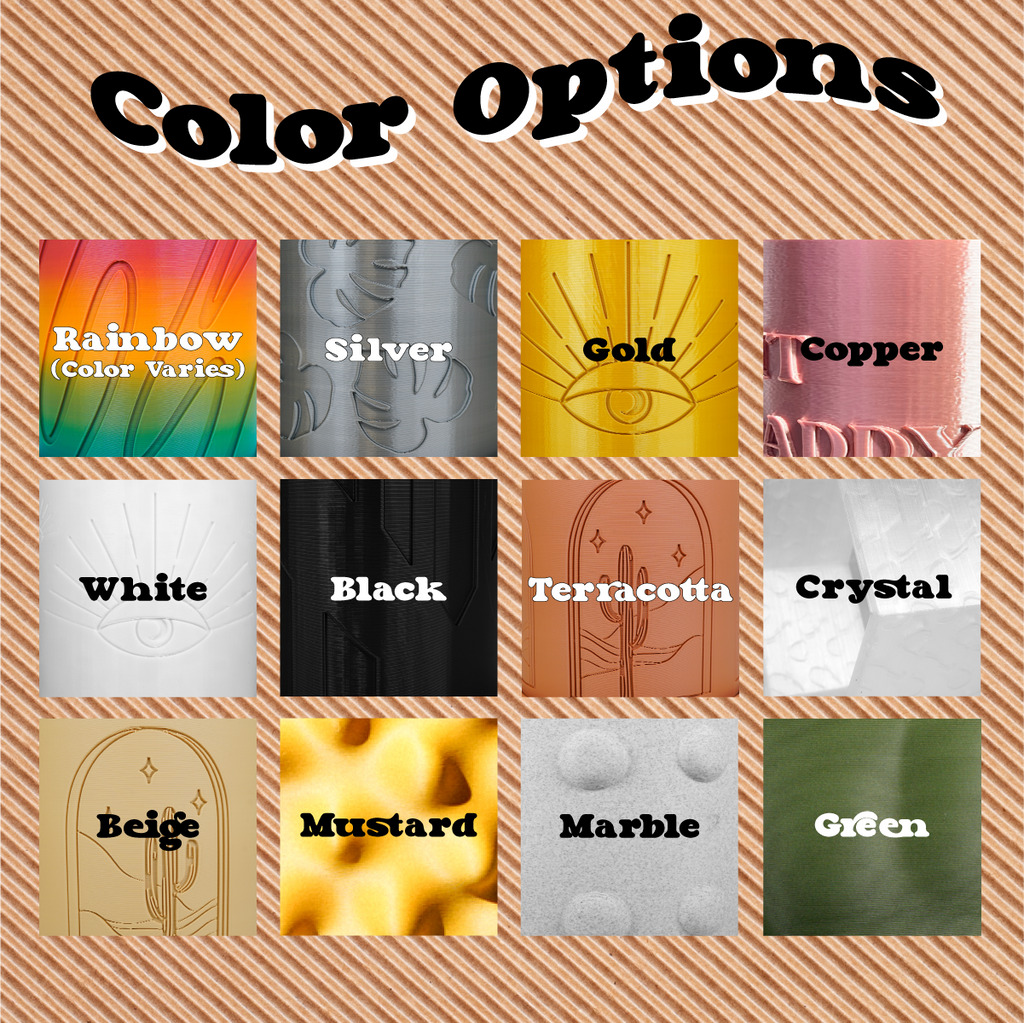 Marble, Terracotta, Granite, Ombre (The Rainbow color will vary depending on size of planter.) If you would like a specific coloration please leave 2 colors in the notes!