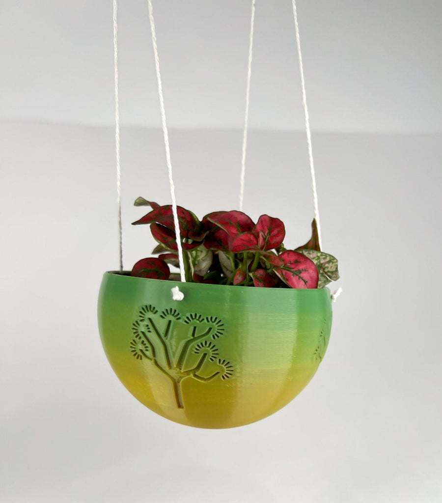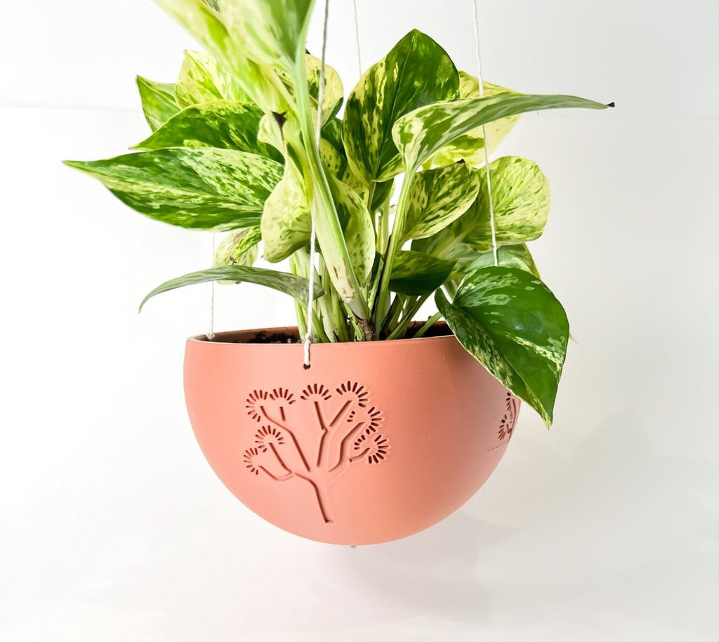 Joshua Tree Orb Indoor Hanging Planter with A touch of Bohemian eclectic for your indoor house plants. This Planter is double-sided so you can see your design from all angles!