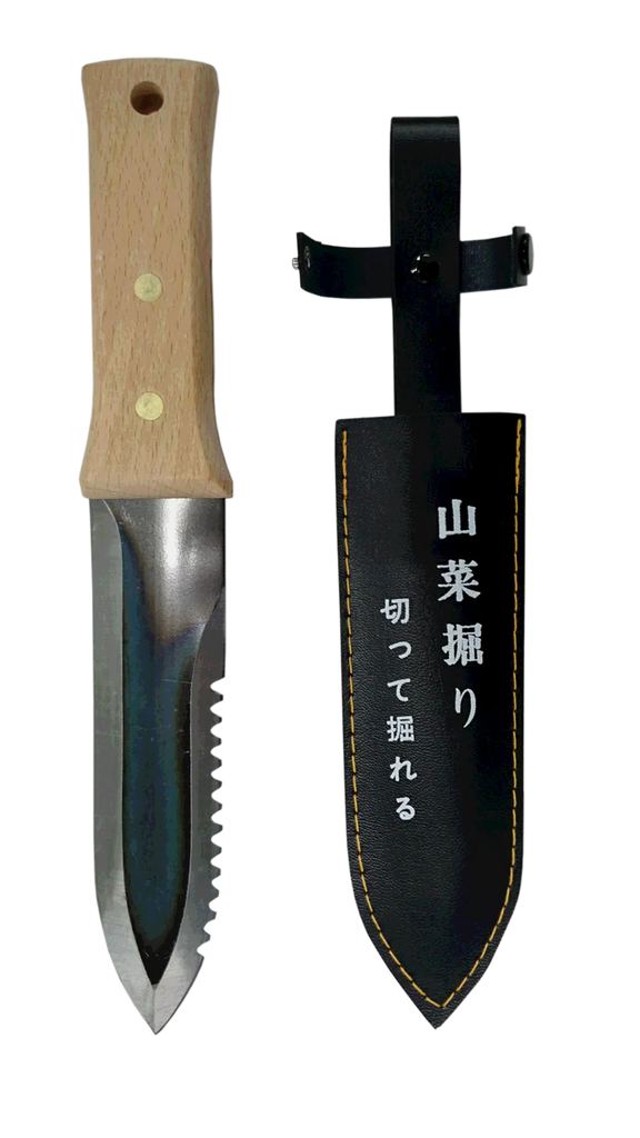 Unleash the power of precision gardening with our 12" Hori Hori Japanese gardening knife, expertly crafted in Japan. Featuring a razor-sharp, concave carbon steel blade, this versatile gardening knife is designed for scooping soil, planting, and digging with ease. Its ergonomic design ensures comfort during extended use, making it an essential companion for gardeners and outdoor enthusiasts alike.