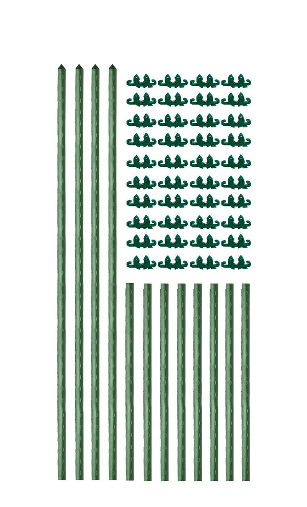 - Four (4) 5' Garden Stakes, Eight (8) stake crossbars (flat on both ends) and forty (40) C-BITES or